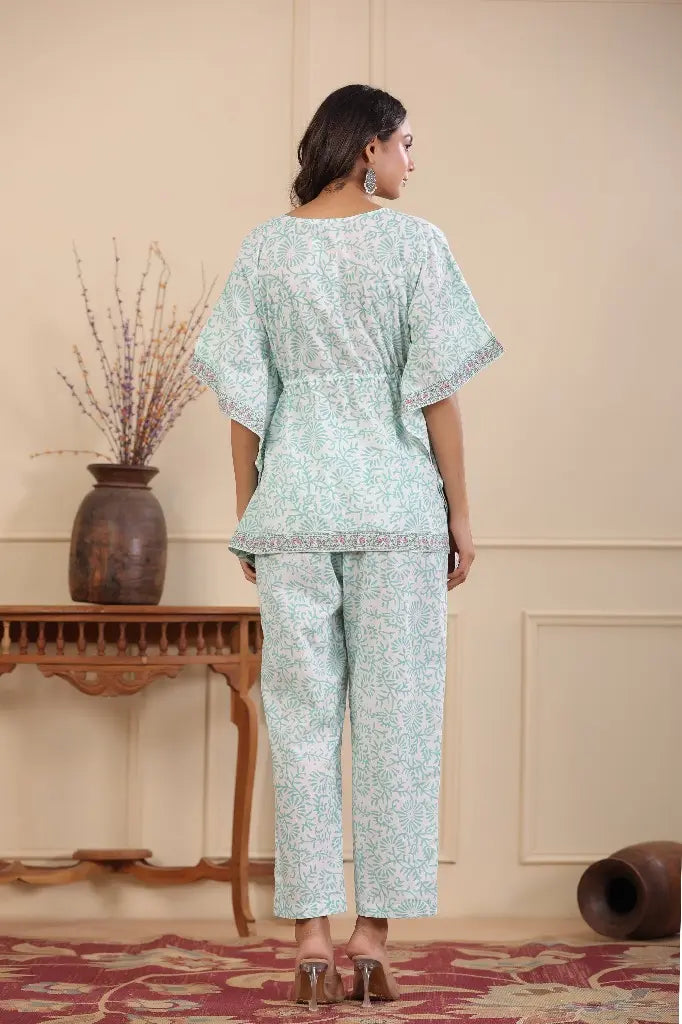 Relax in our cozy pure cotton night suit set. Made from premium pure cotton, it ensures comfort and breathability for a peaceful night's sleep. With a charming round neck, short sleeves, and a stylish blue and white design, it's a must-have for your nighttime wardrobe.